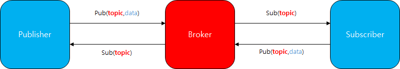 Broker가 Data를 전달하는 방식으로 구성됩니다