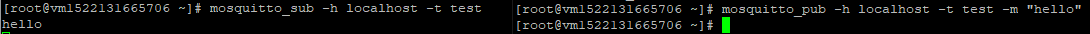 mosquitto_pub -h localhost -t test -m "hello"