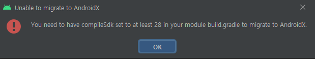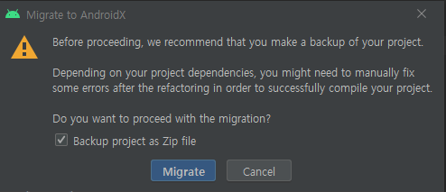 AndroidX 마이그레이션을 진행하시면 다음과 같이 메시지가 보입니다.