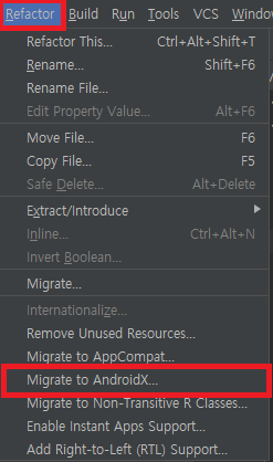 Migrate to AndroidX라는 항목을 클릭합니다.