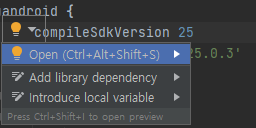 해당 에러를 해결하기 위해 먼저 build.gradle 파일에 compileSdkVersion이 적힌 구문에서