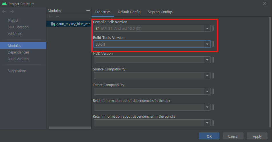 다음으로 buildscript에 있는 내용을 수정해야 하는데 대개는 Sdk Version을