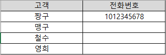 위와 같은 고객관리 테이블이 있다고 한다면 전화번호를 저장하기 위해