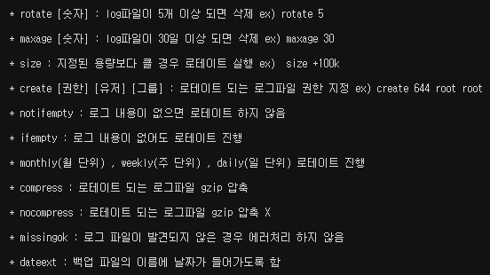 먼저 Logrotate를 사용하기 위해서 기본적인 개념은 알고 있어야 하므로 간단하게 옵션을 알아보겠습니다.