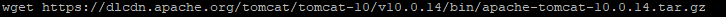 wget 명령어를 이용해서 방금 복사한 주소에서 톰캣파일을 다운로드합니다.