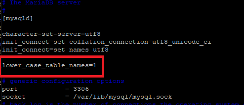 [mysqld] 아래쪽에 lower_case_table_names=1을 입력한 뒤에