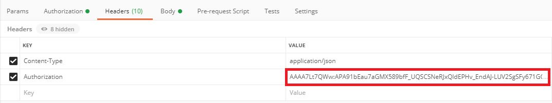 Content-Type과 Authorization 모두 써넣었고