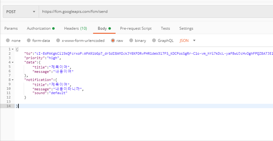 POSTMAN을 통해서 아이폰에 fcm을 보내는 테스트 진행 중