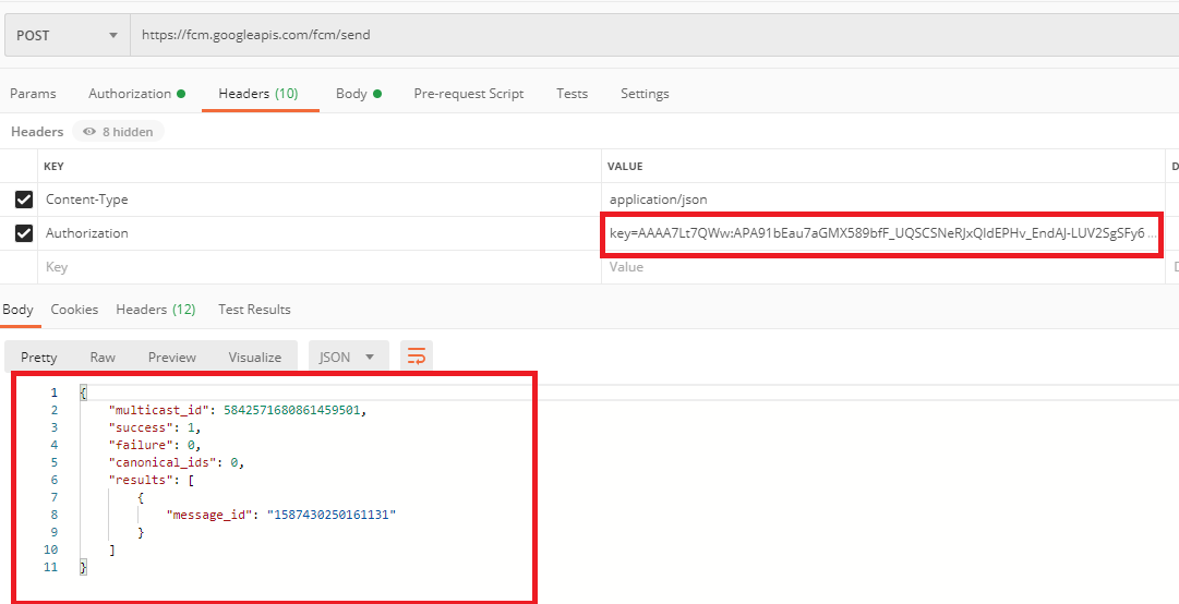 POSTMAN을 통해서 아이폰에 fcm을 보내는 테스트 진행 중